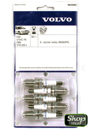 Комплект свечей зажигания 5 цилиндров VOLVO S60, S80, V70 II, XC70 (без turbo) — Volvo Original 8642660